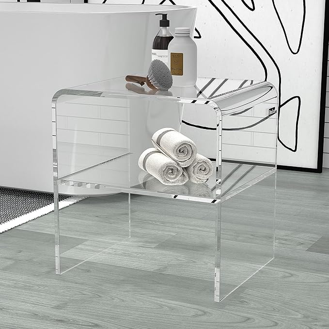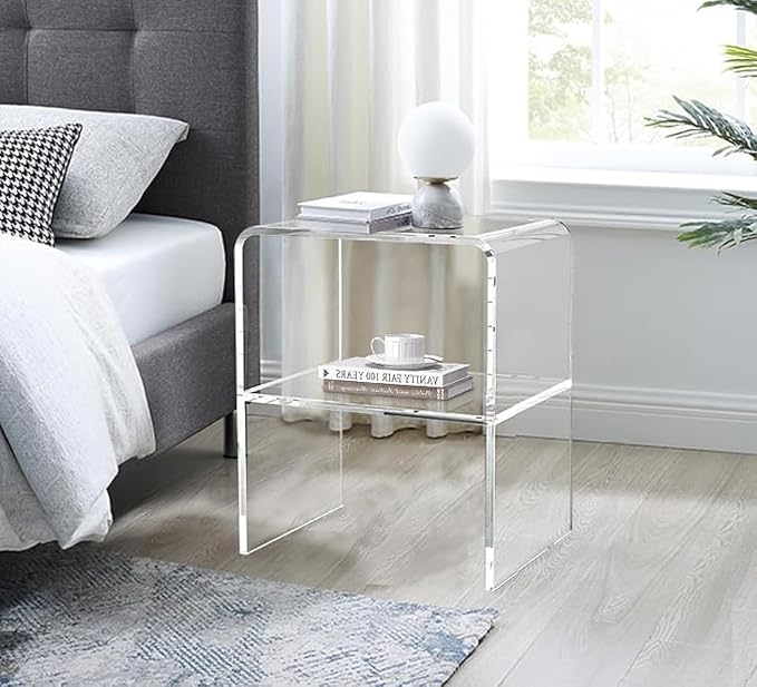 ONELUX 1626 Acrylic Bedside nightstand with Additional Shelf,Lucite Occasional Sofa Tables, Clear