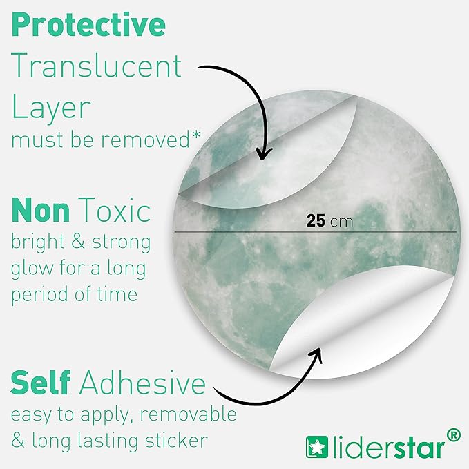 - RISK-FREE GUARANTEE- These luminescent shining stars and moon wall stickers are packaged beautifully, they glow bright & they never lose their adhesiveness. We're so confident you'll love them, we're backing them with our lifetime happiness guarantee! We are here to help - please feel free to contact us