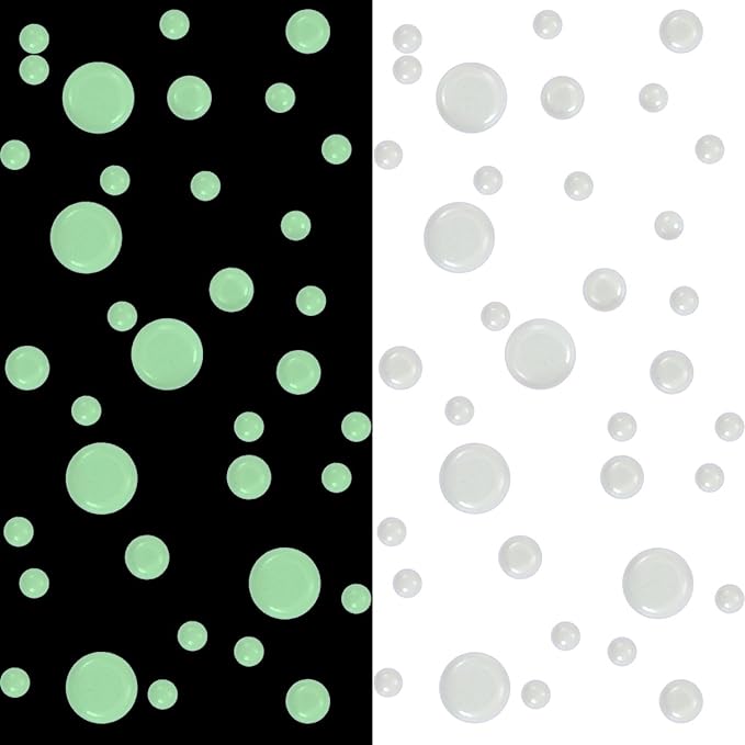 - 606 Realistic Glow-in-the-Dark Stars! These dots aren't flat; instead, they're domed to create a realistic starry sky. This means you won't be disappointed as you might be with flat paper stickers or flat plastic stars. It feels like being under starlight. With this glow-in-the-dark galaxy set, it adds the look of a real night sky. In the dark, the room turns into a starry, shiny bedroom.