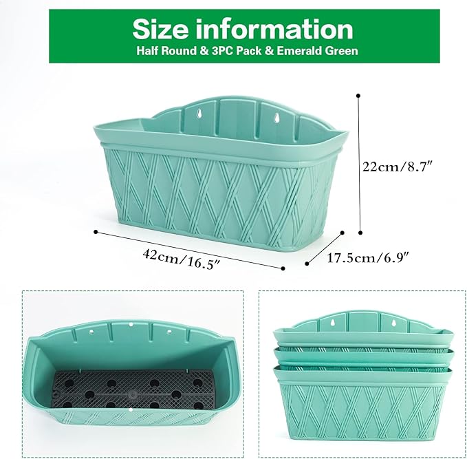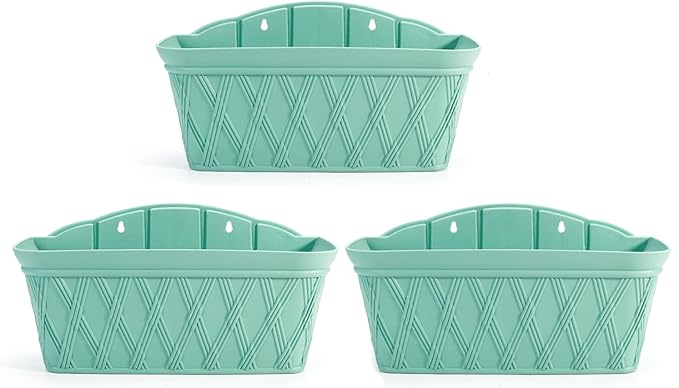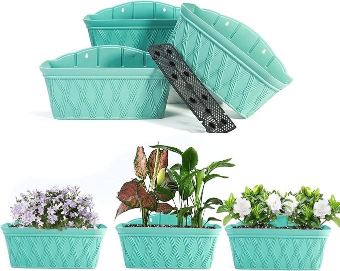 Sungmor 3 Pack Wall Hanging Planters, 16.5 Inch Railing Fence Hanging Flower Pots, Thickened Plastic Water Storage Plant Pot, Indoor Outdoor Garden Balcony Decor, Light Green Large Plant Basket