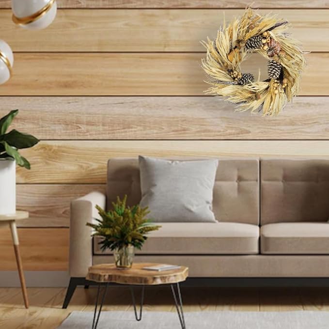 - [Classy Fall Décor] Artificial pumpkin wheat berry corn husk fall autumn wreath a great Boho home wall hanging decors fall front door decorations It has a natural look and feel, you will not believe its faux.