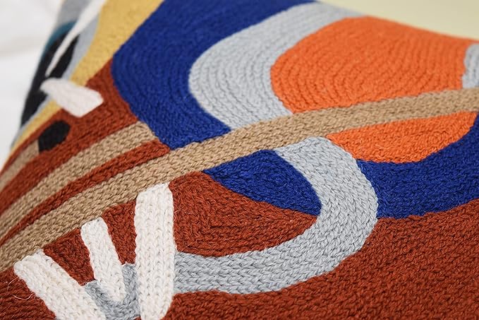 - ๐ PREMIUM NATURAL MATERIALS: Our soft all modern decorative pillows are made of premium organic natural materials. Front - Hand embroidery: 100% Soft Wool, Backing: 100% Cotton Canvas. This needlework embroiderd accent pillow can be used as a mid century modern pillow or as a modern farmhouse pillowcase. Our unique Kandinsky inspired abstract pillows are truly hand embroidered, breathable, soft and comfortable, and easy to care.