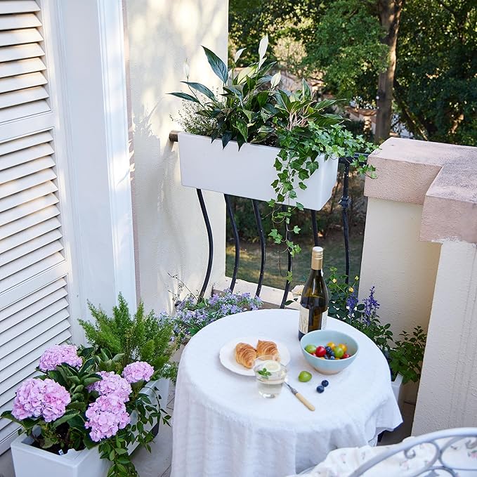 Glowpear Self Watering Railing Planter Box - 23.6", White - UV Stable, Scalable Plant Pot with Water Gauge, Indoor Outdoor for Vegetables, Flowers, Herbs, and Succulents