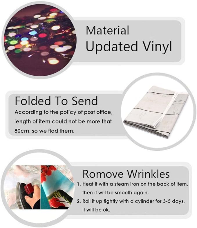 - This backdrop is vinyl material, roll out flat and may be hung either vertically or horizontally. Each backdrop image is high resolution, using high-tech digital designs that make the image more detailed and vibrant, resulting in photos that are more dynamic and realistic. The image is glare free and resistant to fading, though it should be kept out of direct sunlight.