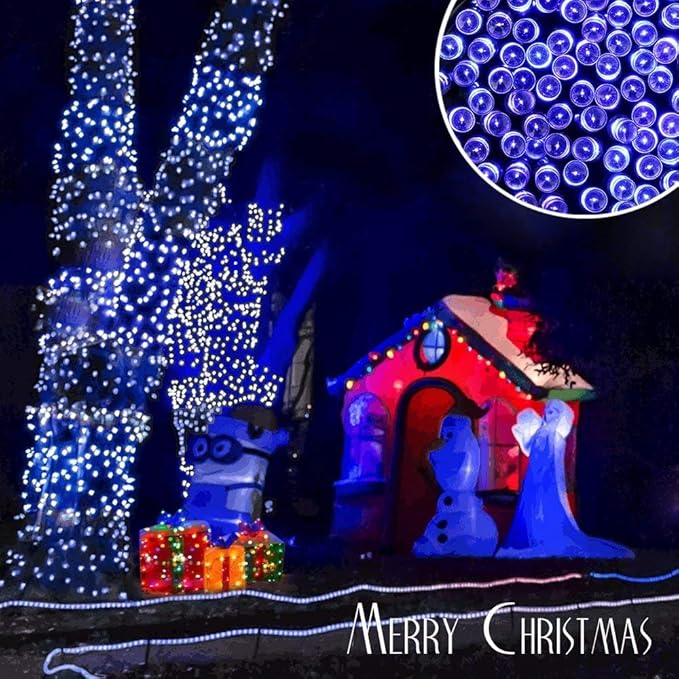 - Solar Powered and Auto On/Off: These blue solar Christmas lights use solar energy, eliminating extra electricity costs and battery replacements. The light sensor charges the lights by day and turns them on automatically at night