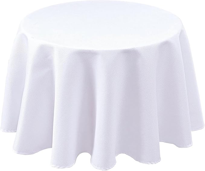 Biscaynebay Textured Fabric Round Tablecloths 60 Inches for Tables diameters from 28" to 48", White Table Cloth Water Resistant Small Circle Folding Table Covers for Dining Kitchen Wedding Parties