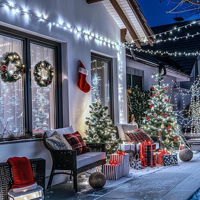 - 【Safe and Waterproof】The solar string lights outdoor waterproof can withstand various extreme weathers (IP44), including heavy rain and snow. Super suitable for indoor and outdoor Christmas decor(Do not soak). Withstand heat(The insulated copper wire keeps the lights at a low temperature so they are safe to touch after many hours of use). Low energy consumption& highly safe!