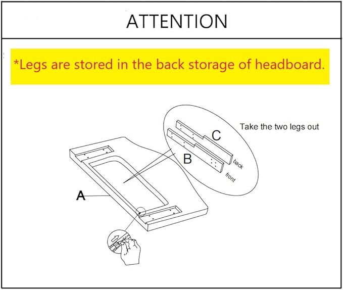 - Easy Assemble: Tools included for easy assembly.Legs are stored in the back storage,unzip to find them (Legs for connecting with bed frame, No wall mounting hardware included)