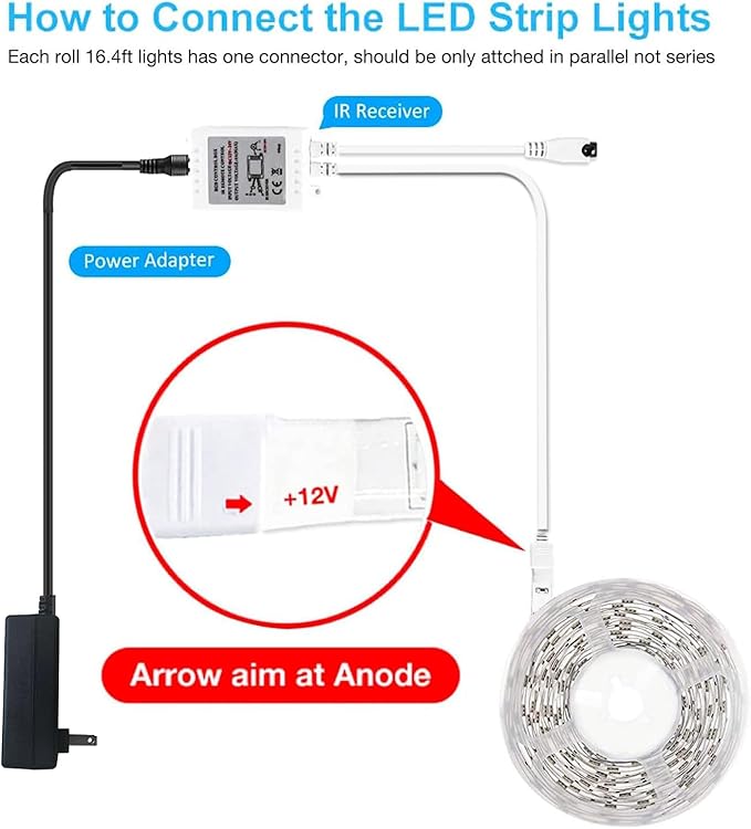 - Strong self adhesive: The led strip lights has strong self adhesive so they stick very well on tv, cars, cabinets and wall; Please test the led light strip before installation, the strip can be connected in parallel, not in series
