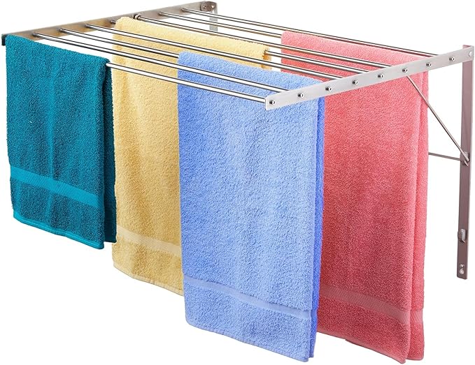 - VERSATILE AND FUNCTIONAL - Use the wall mounted drying rack for everything, from heavy towels to air drying delicate clothing that cannot be put in a dryer. Can be used as a laundry room organizer, towel drying rack, hanging rack for clothes and much more. Sturdy construction and top quality rust-free stainless steel ensure years of use.