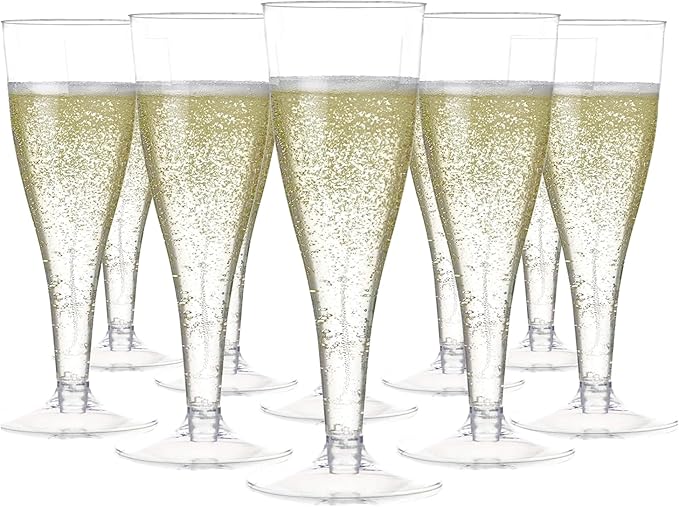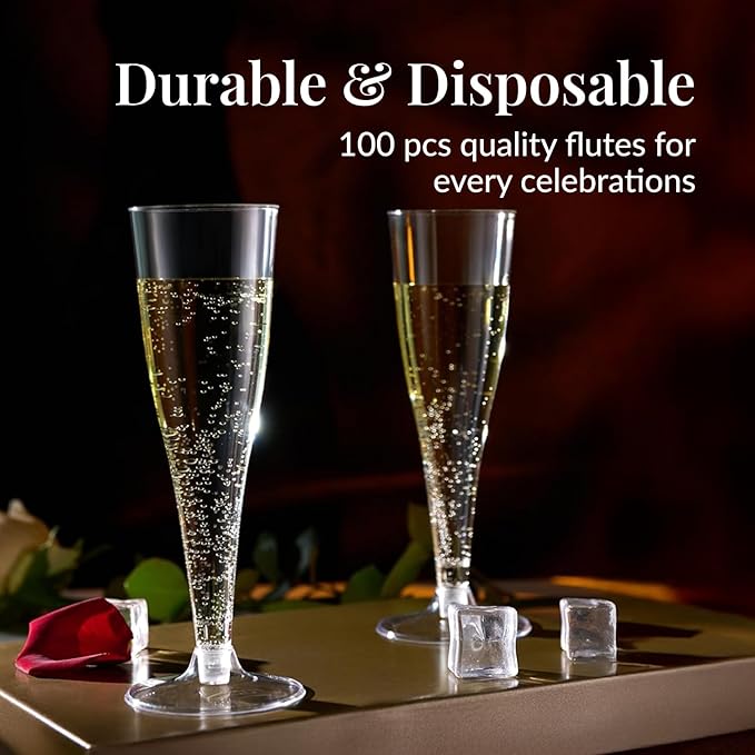 - Large Bulk Supply: Each pack includes 100 champagne flutes disposable with a 4.5 oz capacity, ensuring you have plenty of supplies for big celebrations, engagements, weddings, or parties
