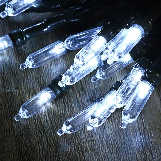 - 2x50 LED Battery Christmas Lights: Battery green wire Christmas lights with 50 led white light bulbs, emits a romantic glow. Enhancing your indoor & outdoor decorations in every season. Powered by 3AA batteries, batteries are not included.