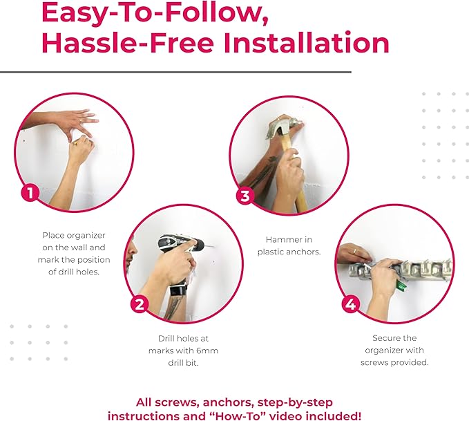 - RIDICULOUSLY EASY TO INSTALL – Along with your new hanging storage organizer you will receive all the screws and anchors needed to mount it securely, along with clear, step-by-step written and video instructions that allow even the clumsiest of us to easily install it in just minutes