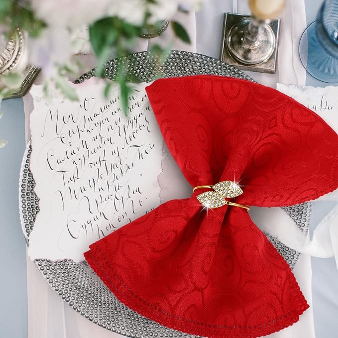 - You will get: set of 24 pieces metal napkin rings, design by shiny rhinestone double leaves, elegant plated add more gloss and sparkly, which makes for an elegant addition to the table setting