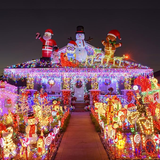 JMEXSUSS Icicle Christmas Lights, 200 LED Multicolor Indoor Outdoor Waterproof, 8 Modes Decorations for Xmas Roof Party Holiday