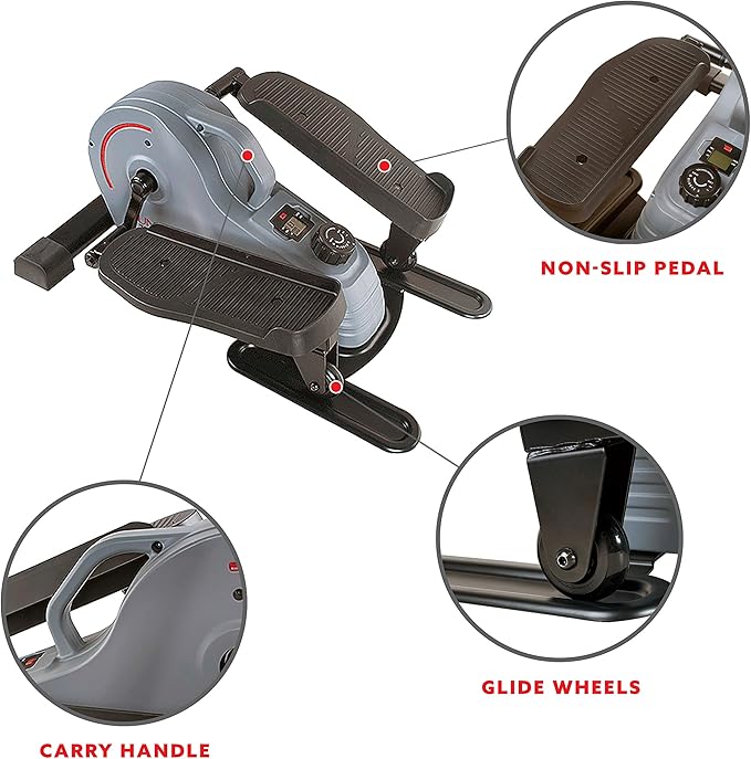 Sunny Health & Fitness 2-in-1 Sit/Stand Mini Elliptical Machine, Portable Under Desk Peddler Exerciser for Senior Home Workout, Optional Free Sunnyfit App Bluetooth Link, Handlebars or Resistance Band