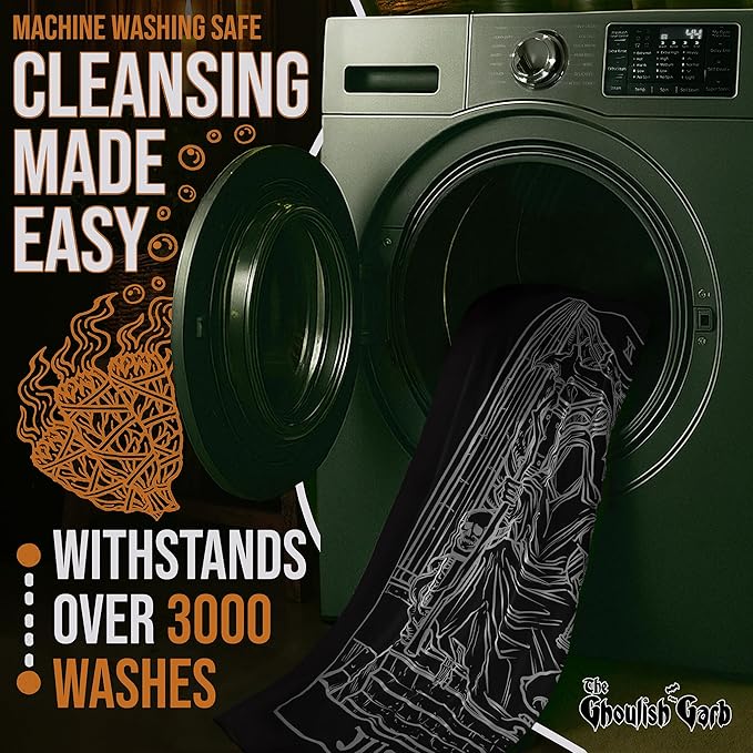 The Ghoulish Garb Justice Tarot Card Tapestry (Black & White) - Grim Reaper - Gothic Halloween Home Decor Wall Hanging (80" x 68")