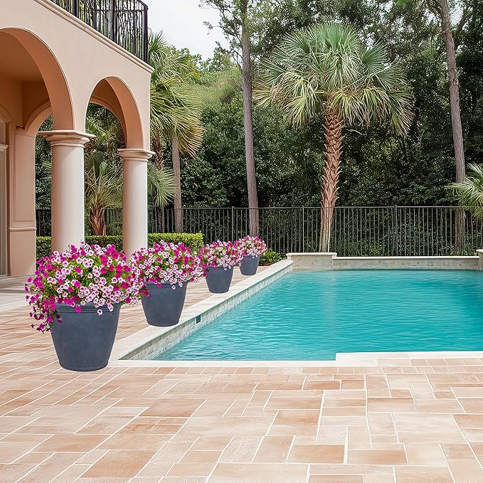 Sunnydaze 24-Inch Anjelica Large Plastic Pot for Plants - Outdoor Polyresin Round Planter with Drillable Drainage Holes - Slate