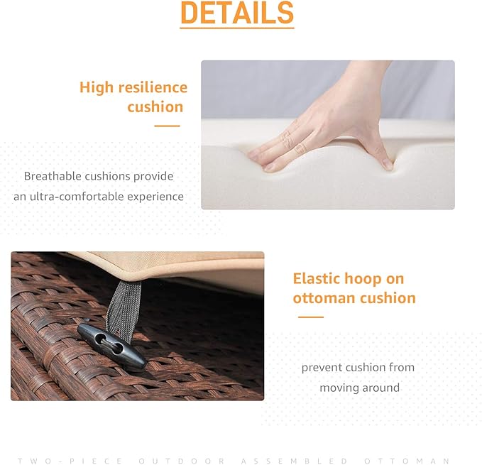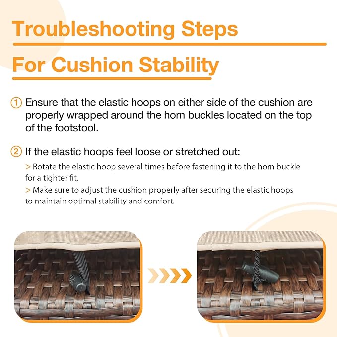 - ๐ใCome Assembledใ--No Assembly Required. Individual Ottoman Weight Capacity: 250 lbs; Easy to use and save time. Shipping in 1 box. We will advise you to rotate the elastic hoop several times before fastening it to the horn buckle for a tighter fit if customers find the cushion to be a bit unstable, minimizing movement and enhancing stability.