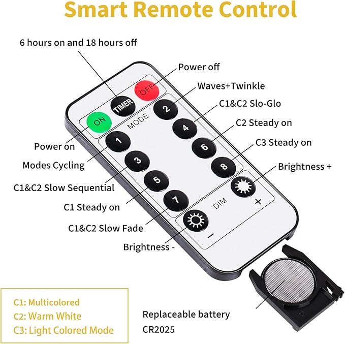 - 8 lighting modes and timer function: These led ball lights have 8 impressive lighting modes, which can be controlled by the remote or the button on the USB plug. They also have timer function that allows you to turn on the lights for 6 hours and off for 18 hours automatically every day