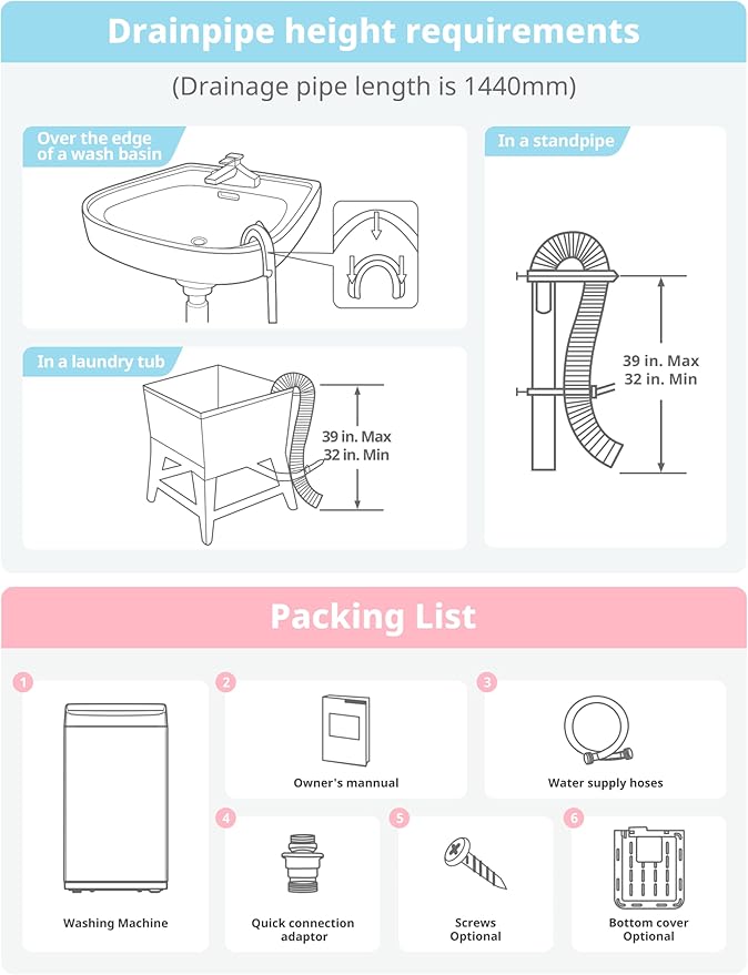 - This top load compact washing machine with only 18.1 inches in width, 17.7 inches in-depth, and 31.5 inches in height, this portable washer is able to be stored easily. You can store it in your cabinet, RV, dorm, or even bathtub! Even better, it comes with wheels and handles for easy movement. It is a perfect choice for small households with limited space and minimal optimal.
