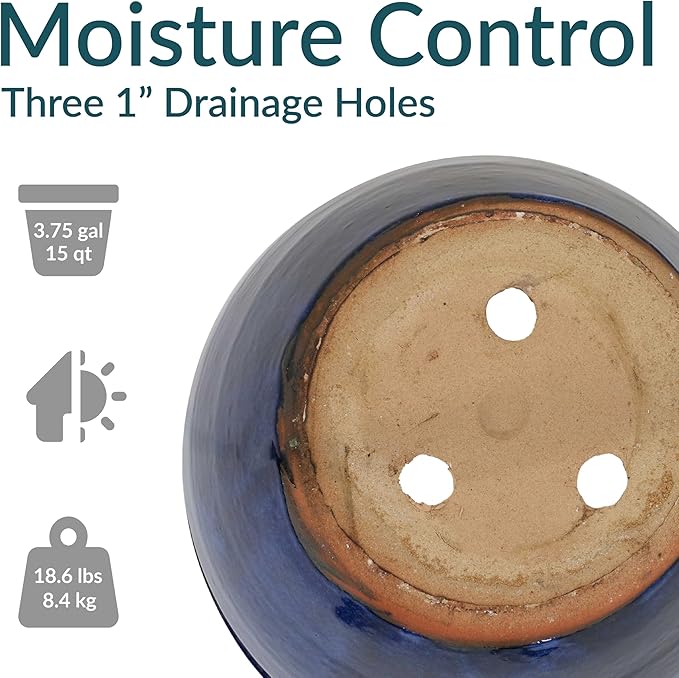 - DESIGNED FOR BEAUTY AND DURABILITY: This outdoor plant pot is crafted with a rich, hand-painted glazed finish that is kiln-fired for a classic, shining appearance. Subtle variations in color highlight the artisanal glazing process, making each piece truly unique. The durable ceramic construction offers natural UV and frost resistance, while its heavy weight adds stability to outdoor arrangements, keeping the planter upright in windy conditions.