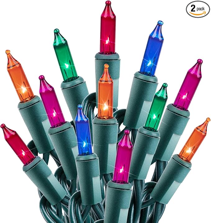 - 2 Pack 26.5 Feet 100 count fairy lights with 3 inch lights spacing, sufficient length for long distance lighting, with red, green, blue, pink and orange colors, just plug in and color your Christmas Holiday. It is also an ideal and wonderful gift for families, friends or relatives