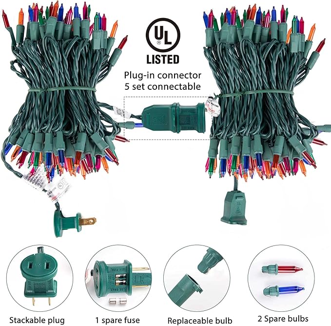 - Premium and Safe: The christmas lights are made of great material and superb craftsmanship, built in fuses, universal UL listed certification, IP44 waterproof, can be used safely. These sparkling waterproof string lights can not only provide good lighting effects but also bring a more romantic festive atmosphere, great for indoor and outdoor lighting decoration