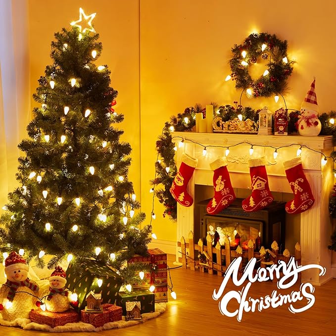 Brightown C9 LED Christmas String Lights, 33ft 50 LED Waterproof Strawberry String Lights, Plug-in Extendable Green Wire Lights String for Outdoor Indoor Patio Party Decoration, (Warm White)