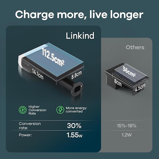 - [High-Efficiency Solar Panel & Adjustable Design] - The upgraded solar panel offers a 30% higher photoelectric conversion rate, reducing charging time and maximizing power efficiency. The panel is fully adjustable—90° vertically and 180° horizontally—allowing you to optimize sunlight exposure for brighter and longer-lasting illumination