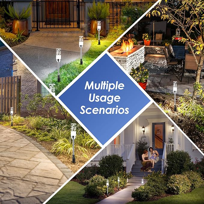 - 【Bright and Stable Walkway Lights】Electric outdoor walkway lights uses high quality 5050 LED beads, emits bright and stable 6000K cool white light. The body of the light is made of high-definition, high transmittance acrylic material, filled with tiny bubbles, creating a unique visual effect under the light, very suitable for gardens, yards, walkways, lawn, sidewalks halloween christmas landscape lighting decoration.