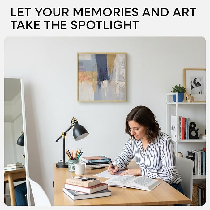- SUBTLE GLOW. SIMPLE FORM. This frame’s polished champagne gold hue adds just enough shine to catch the eye. Clean lines and a minimalist build keep the look modern and uncluttered.
