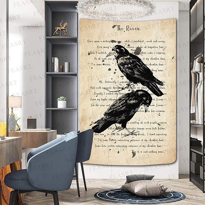 FEASRT The Raven Tapestry Nevermore Wall Decor Vintage Poe Gothic Rustic Home Room Raven Wall Hanging 40x60inch for Living Room Bedroom Dormitory Office GTQQAY1185