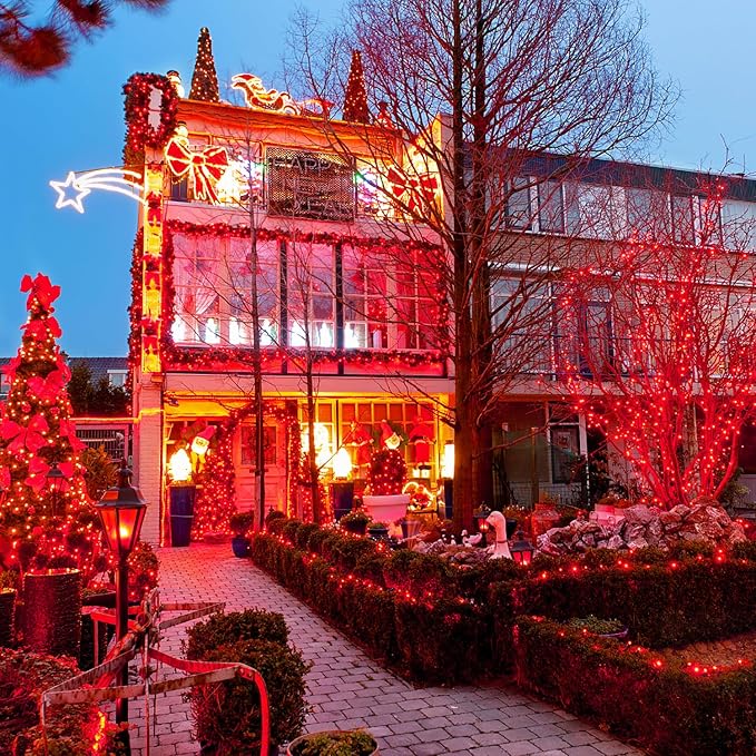 - 【IP44 Waterproof & Wide Use】The red Christmas lights outdoors have a high waterproof rating of IP44, and can withstand the impact of rain (Note: protect the plug away from water). Ideal for Christmas tree, wedding, Christmas party, bedroom, garden, or balcony decorations.