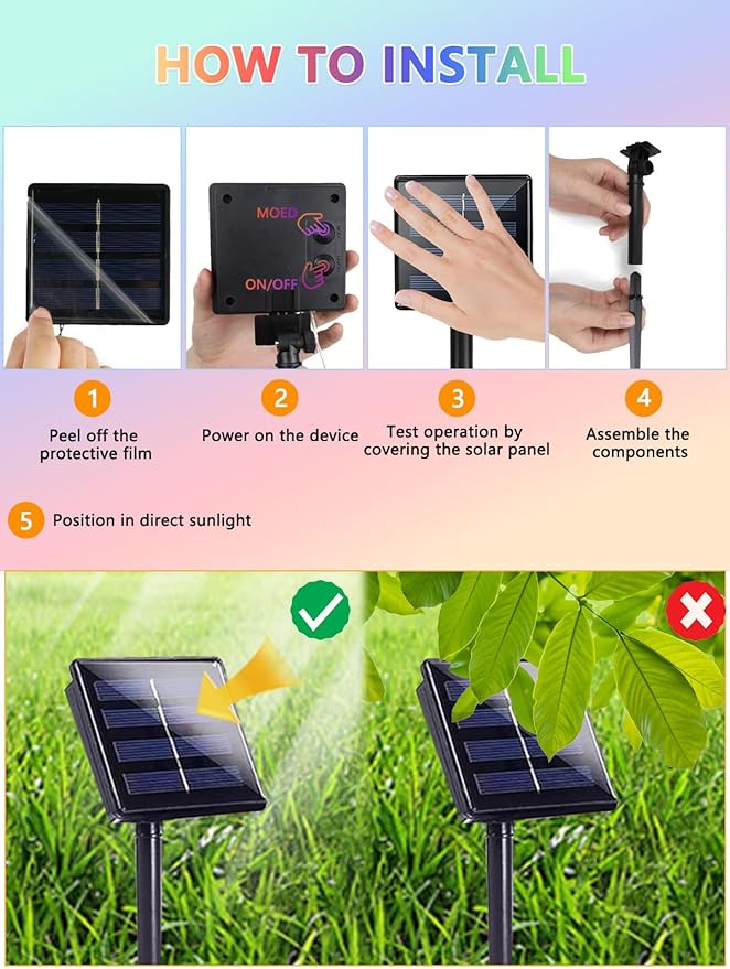 - 8 Lighting Modes & Auto On/Off & Memory Function: The solar twinkle lights have 8 lighting modes for selection. After powered on, just press the mode button to choose your favorite mode to satisfy your diverse needs. And the built-in memory chip saves your last mode setting, so there is no need to reset it everyday. It is very convenient for use outdoor. With the built-in light sensor, the lights will turn on at dusk and turn off at down automatically