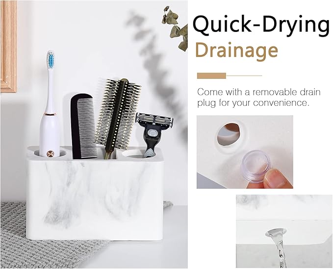 - 【Space Saving】 Our toothbrush holder features two holes for electric toothbrushes holder and one hole for toothpaste or razors. This thoughtful design allows you to neatly store all your dental accessories in one place, keeping your bathroom countertop organized and clutter-free.