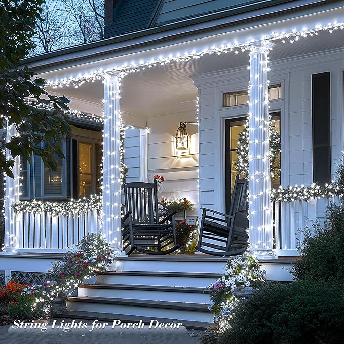 - 【Storage Wheel Design & Outdoor Use】Our outdoor white String Lights more right for outdoor use and daily decorations. The reel which made it easy to put up and take down. And it ensure the lights won’t get all tangled up while unrolling a few feet at a time. In the next festival or party you can easily use them again. The white Christmas string lights are perfect for both indoor and outdoor use as the waterproof feature (Note: The transformer is NOT waterproof, please place it in a dry place.)
