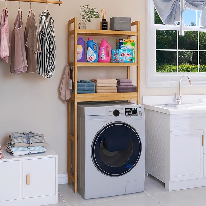 - DO’T WASTE SPACE ABOVE the TOILET: Designed to make full use of the blank space above the toilet, this space-saving toilet storage rack give you 3 adjustable shelves to hold all your bathroom essentials. Besides, placed it above the washing machine to store care supplies also would be a good idea