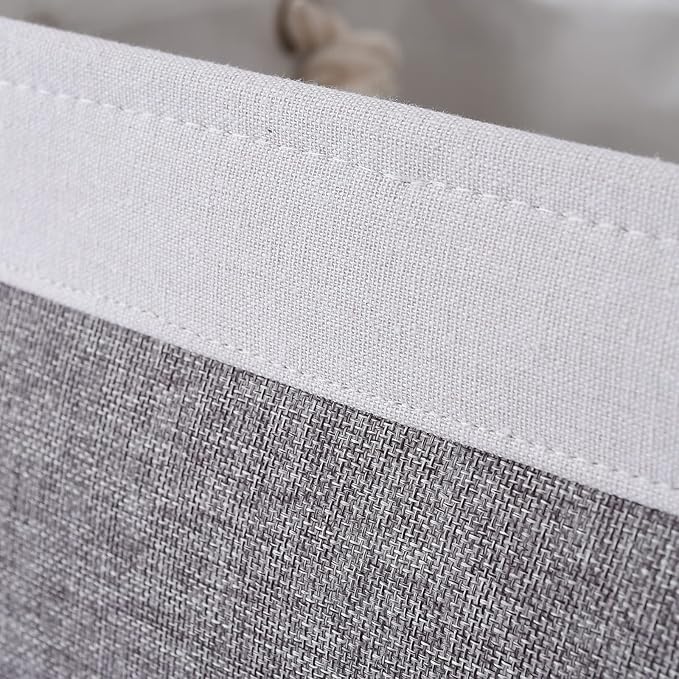 TcaFmac Collapsible Storage Bins for Organization - Large 3 Pack Canvas Storage Basket for Shelves, Organizer Baskets for Organizing for Closet Cloth Dog Toy Baby (White & Grey 16x12x8 inch)