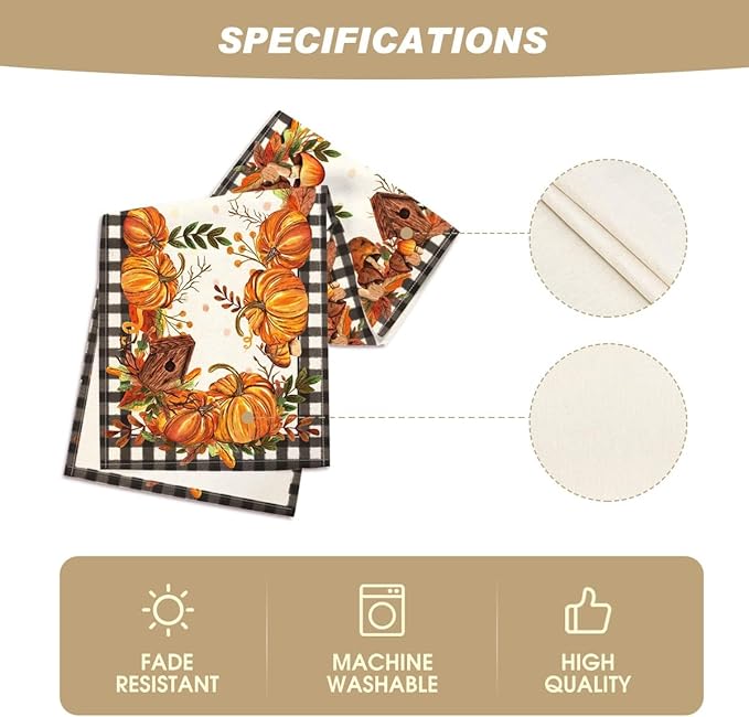 - Easy to Clean : Machine wash and lay the table runner flat to dry. Stays the same and as new after every wash. Material: 100% Polyester, no shrink, no fading. Imported, Country of origin: China