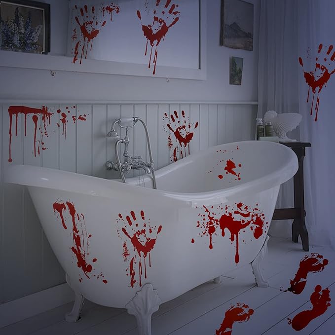- 4. Best Halloween Props: These vivid and bloody handprints and footprint stickers will definitely make your Halloween party full of haunted house atmosphere. They are a great choice for Halloween decorations and walking dead parties.