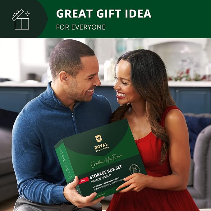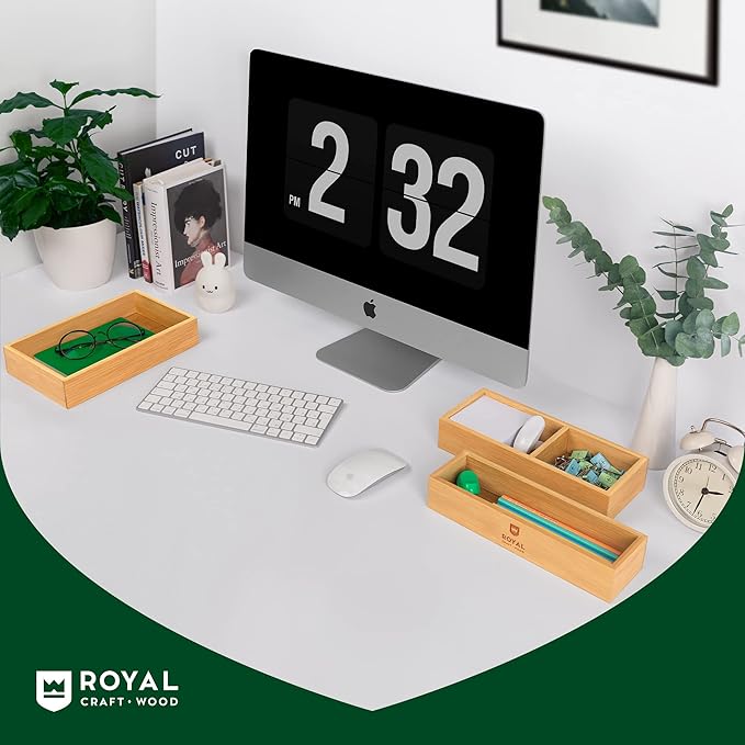 ROYAL CRAFT WOOD Luxury Bamboo Drawer Organizer Storage Box, Bin Set - Multi-Use Drawer Organizer for Kitchen, Bathroom, Office Desk, Makeup, Jewelry (3 Boxes)