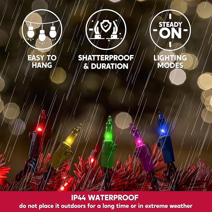 - UL Certified & IP44 Waterproof for Safe Outdoor Use.This Joiedomi multicolor Christmas lights are UL588 listed and feature IP44 waterproof rating with built-in fuses, meeting strict US safety standards. Feel confident decorating outdoors in rain or snow, knowing your home and family are protected with these safe Christmas lights.