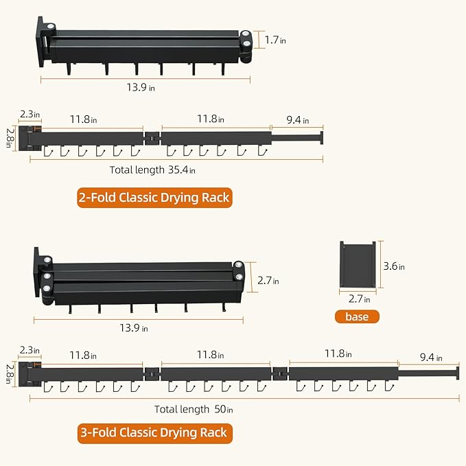 - ✅ Upgraded Foldable Clothes Drying Rack Design -- Our clothes drying rack wall mounted features a tri-fold design with a total length of 47.2 inches and a compact folding length of just 14 inches, making it an ideal space saver for your laundry room or apartment **Warm Tips: sheetrock wall is not recommended