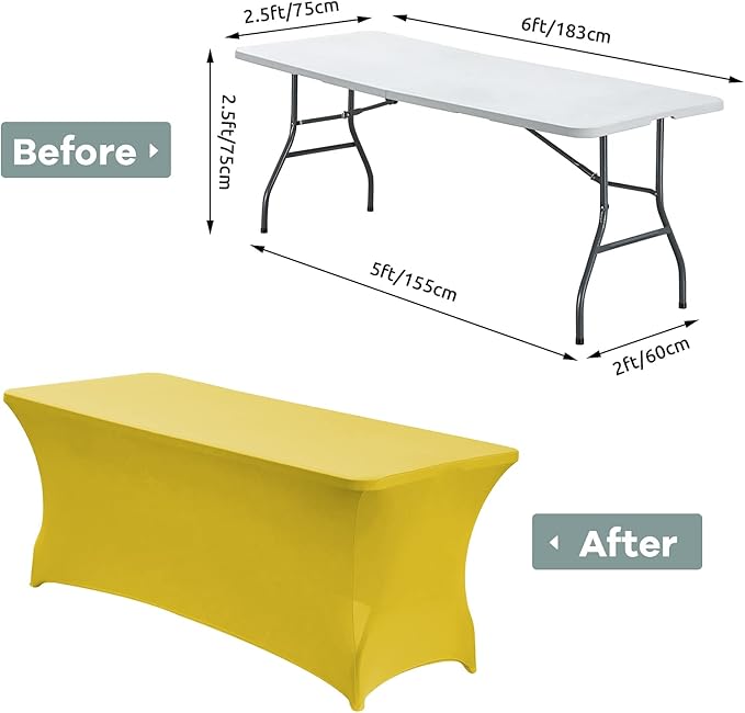 - [Easy To Set Up]: Our table cover is easy for you to set up,just wrap around your table, put 4 table legs into Elastic leg pockets,and ensuring that every part of the rectangular table is covered and spandex table cloth cover is displayed uniformly;It can be used for both indoors and outdoors