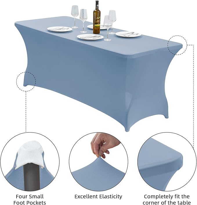 - [Easy To Set Up]: Our table cover is easy for you to set up,just wrap around your table, put 4 table legs into Elastic leg pockets,and ensuring that every part of the rectangular table is covered and spandex table cloth cover is displayed uniformly;It can be used for both indoors and outdoors