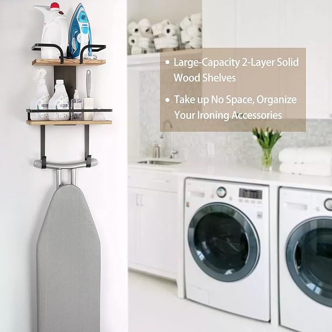 - 【2-Layer Larger Storage】Upgraded 2-layer solid wood design, this ironing board hanger for wall offers twice as much storage space as any other products. It is convenient for you to keep your irons, ironing board and ironing accessories in one location.