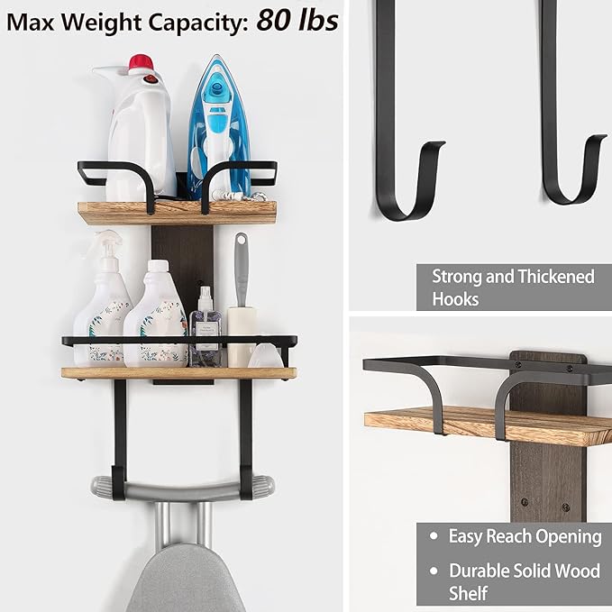 - 【Laundry Room Must-have】Seamless construction of natural rustic wood and metal is both aesthetically pleasing and durable, serving as a safe haven for your ironing board and irons. There is no more complaint about ironing board spoiling your house’ s decoration.