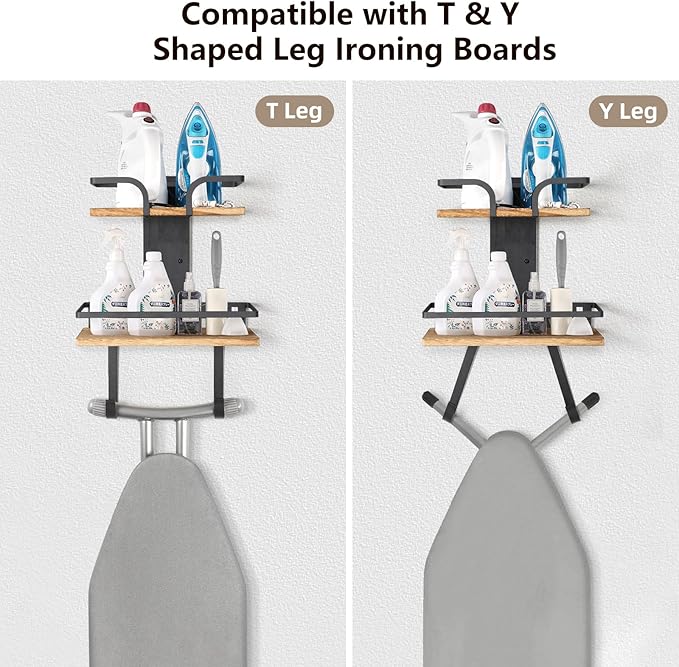 - 【Functional & Versatile】 Apart from the ironing board and the iron, you can store various types of items on the shelves. This holder is also suitable for utility room, sewing room, bathroom, kitchen, or bedroom to keep everyday stuff organized and accessible.