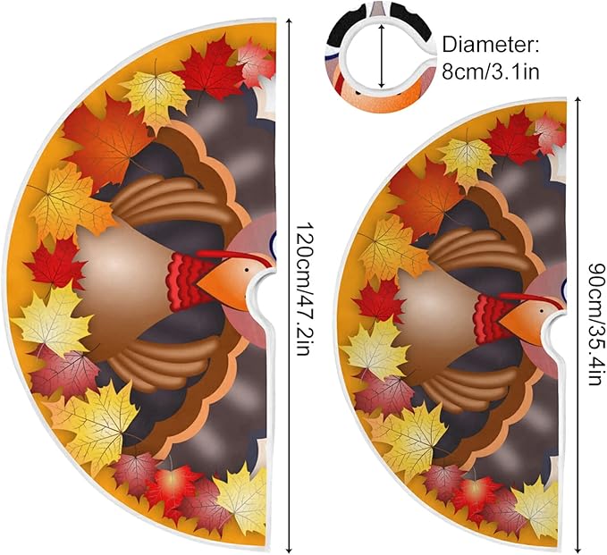 Thanksgiving Turkey Maple LeafTree Skirt, Seasonal Tree Mat Holiday Party Supplies Ornaments Indoor Outdoor Decorations for Tabletop Trees 47.2 Inches
